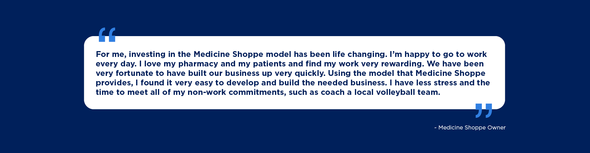 If you're feeling constrained by corporate pharmacy models and crave the freedom to practice your way, The Medicine Shoppe Pharmacy offers a refreshing alternative. With over 30 years of experience in Canada as a trusted community pharmacy, we deliver a turnkey boutique pharmacy model that empowers you to lead your business while benefiting from the strength of a trusted support system.